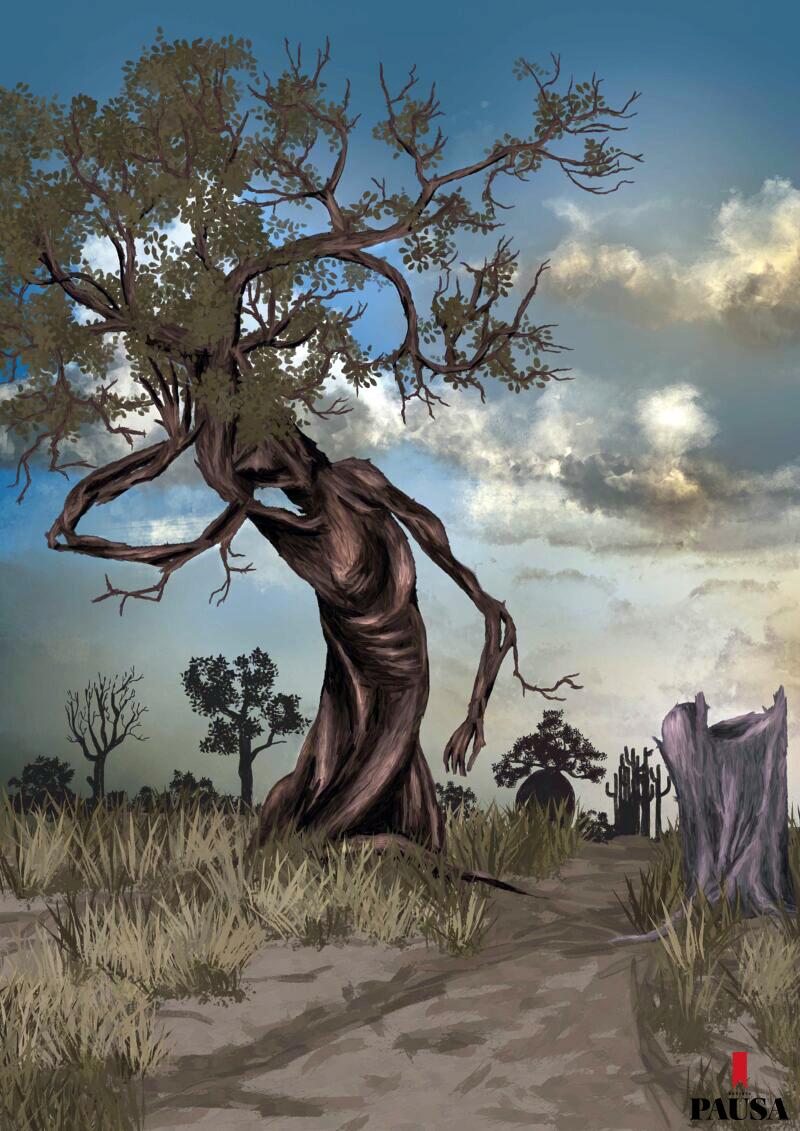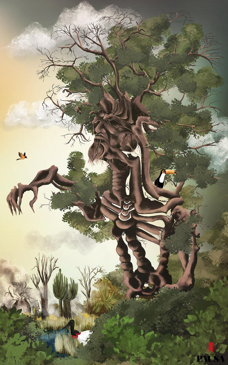 La serie de árboles es una de las más importantes de toda su trayectoria. Si bien su trabajo está ligado íntimamente con la vida silvestre, había algo que tenía dentro y lo quería sacar. Primero lo hizo en forma de poesía: “Cuando nosotros tratamos mal a la vida del ambiente, las nubes se alejan y la vida silvestre también. Aparecen nubes, pero no se dispersan. Están encima de nosotros. Había sido que son los humos de la quema del bosque y en el fondo se escuchan los gritos de los últimos árboles”.