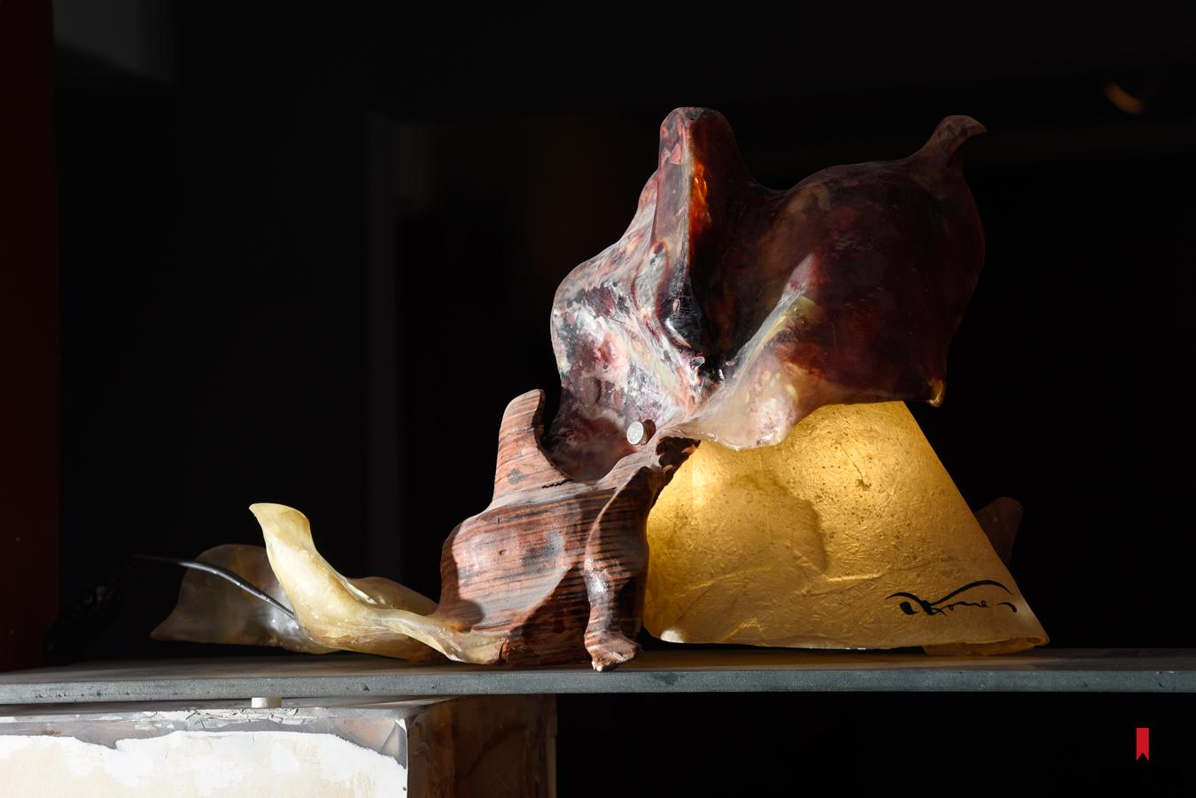 Todas fueron creadas con una combinación de madera, hierro, resina y cuero, y tratadas para que conserven la cercanía con lo natural. Está en el interés de Luis ayudar a su materia prima a mantener cierta vitalidad y memoria propias, una manera de permitirle la capacidad de “seguir hablando incluso después de transformada”.