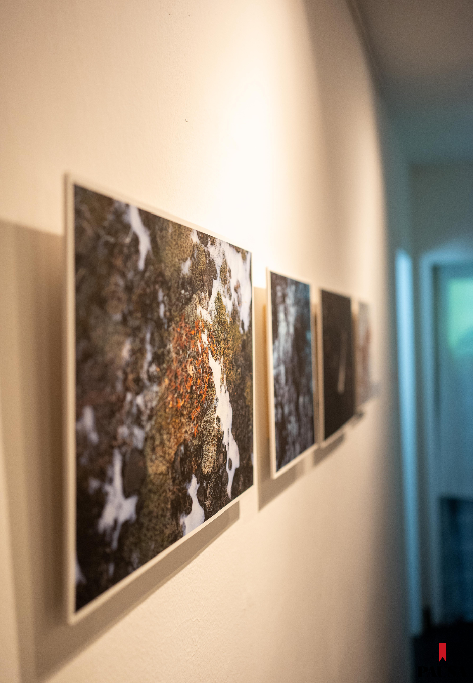 “Al observar las fotos de Juanjo, siento como si estuviera pintando esas imágenes. Incluso los materiales que usamos tienen conexiones: el barro negro y la tierra que empleo resuenan con su fotografía”, expresa Amelí. “En nuestras obras siempre hay una presencia de la naturaleza, ya sea en texturas, colores o formas. Juanjo mencionaba que los ecos creativos no son unidireccionales, sino que cada uno aporta desde su individualidad algo que converge en un sentimiento común”, agrega.
