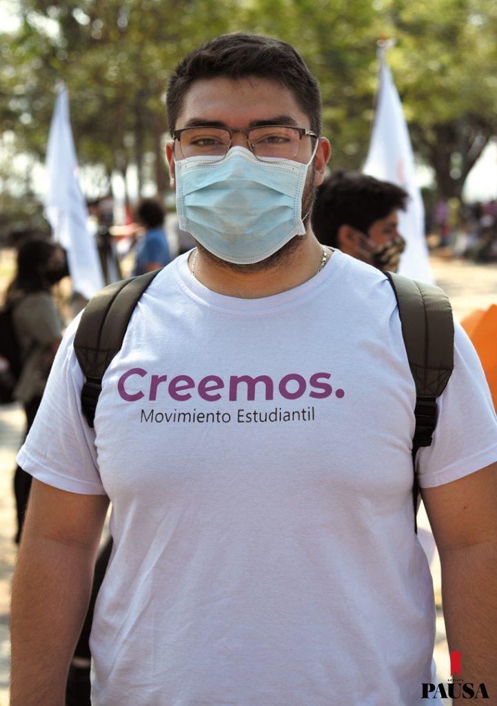 “Siempre está el parámetro entre comer o estudiar, comer o militar, y es momento ya que eso deje de suceder, y que sea realmente lo primordial estudiar, que ese sea nuestro objetivo hasta culminar la universidad”, opina. Portillo es parte del movimiento Ofensiva Universitaria, que articula a estudiantes de todo el país, y es vicepresidenta del Centro de Estudiantes de su facultad.