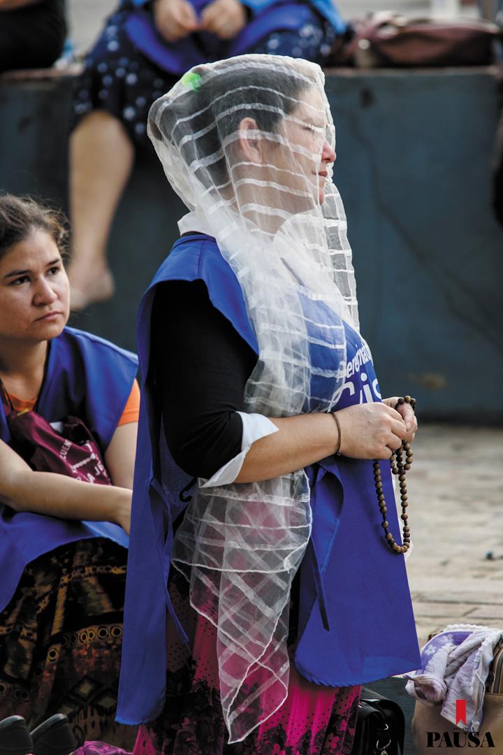 Acudieron para la misa de las 19.00, pero llegaron cuatro horas antes para guardar un lugar especial. Se sentaron sillitas bajo el sol candente de la tarde a esperar la eucaristía. En sus labios y actitud se pueden adivinar las oraciones y su ferviente emoción por encontrarse en la casa de la mamá guasu.