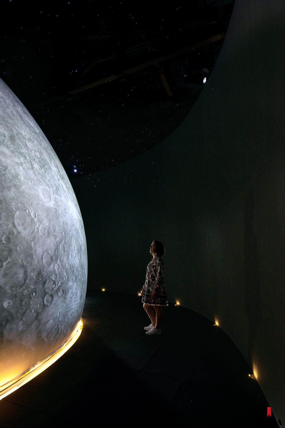 El nuevo espacio se estrena con dos shows. El primero, Al filo de la oscuridad, basado en fulldome (formato de proyección inmersiva con filmes panorámicos en 360 grados dentro de una estructura de domo), fue producido por Evans & Sutherland. Esta propuesta presenta escenas de lugares nunca antes vistos en el universo, reunidos por misiones especiales que culminaron con descubrimientos revolucionarios en 2015. Incluye un vuelo espectacular a través de los grandes acantilados del cometa 67P, una aproximación a las fascinantes luces brillantes en Ceres, y las primeras imágenes cercanas del planeta enano binario Plutón/Caronte y sus lunas.