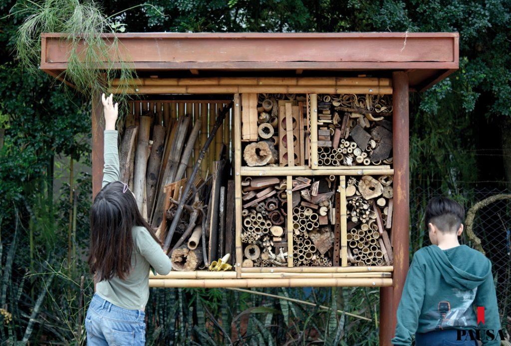 Uno de los principales problemas que afectan a las comunidades de insectos, no solo en nuestro país sino en el mundo entero, es la pérdida de espacio vital en el que nidifican, para asegurar su reproducción y la continuidad de cada familia y especie. Esto se traduce en una alarmante disminución de sus poblaciones. La generación de espacios artificiales —que no suplen lo generado en la naturaleza, pero emulan los intersticios, recovecos y texturas que se dan naturalmente para albergar a una enorme cantidad de vida— ayuda. Así se atrae y alberga a los insectos polinizadores y se transporta el polen de la parte masculina de una flor a la femenina de otra, para lograr fecundar la planta.