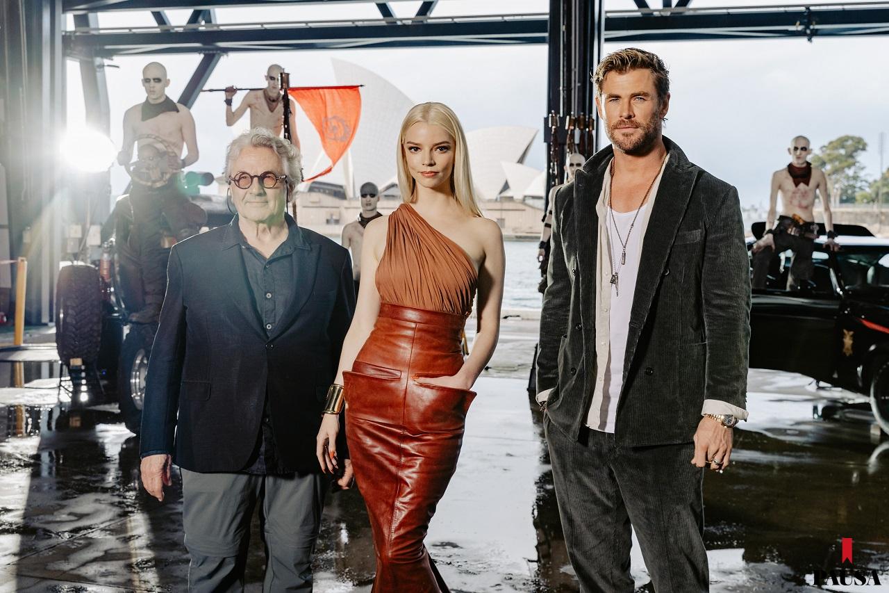George Miller, Anya Taylor-Joy y Chris Hemsworth. Fotografía: Sonna Studios, gentileza de Rola Distribuidora y Warner Bros. Latinoamérica.