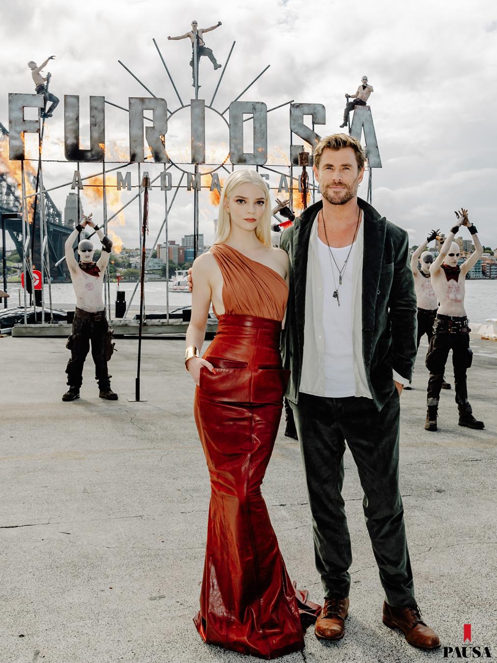 Anya en compañía de su coprotagonista, Chris Hemsworth, quien interpreta a Dementus. Fotografía: Sonna Studios, gentileza de Rola Distribuidora y Warner Bros. Latinoamérica.