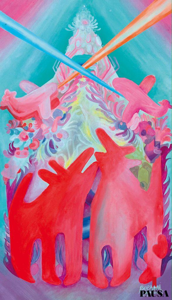 Rivelazione es la serie digital que empieza con una pintura acrílica a la cual se le agrega una composición del músico paraguayo Javier López. Además, fue editada por Camilo Moreno. Expuesta en una pantalla Led, parece hecha con inteligencia artificial, pero no: “Cada cuadro que se ve caer en la pantalla somos nosotros, que hicimos un corte, es como un gran collage”. El trabajo feroz pesa 35 gigabites. Si bien hay un parecido con imágenes desarrolladas por IAs, estas están cargadas de componentes humanos.