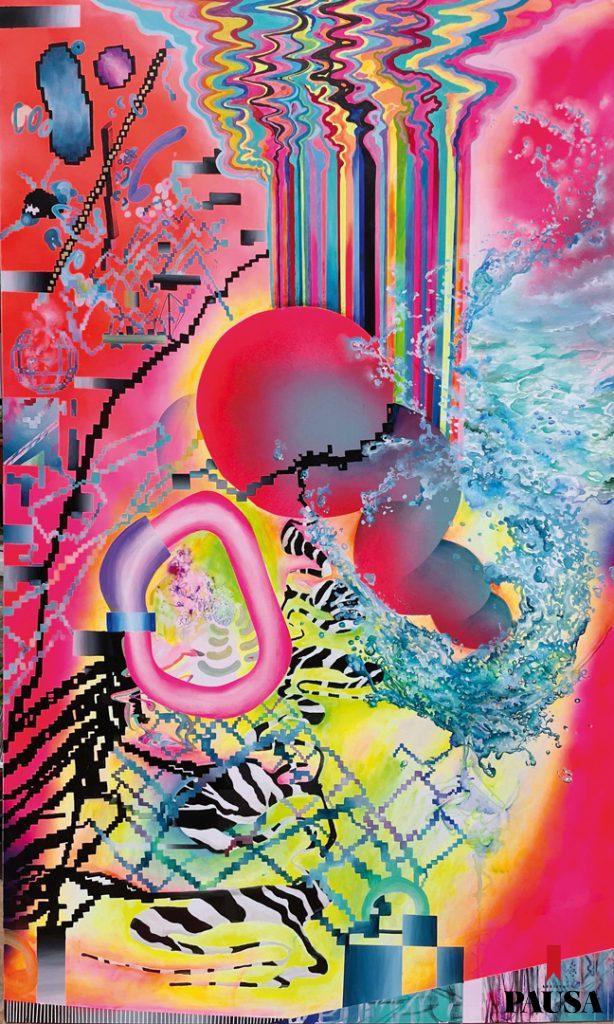 “Cuando estudiaba teatro, mi cuerpo era mi herramienta principal, no la pintura, los lienzos ni los marcadores. Me encanta lo performático, lo lúdico. Siempre fui dinámico e inquieto”, dice. De hecho, performance y juego están presentes en su producción.