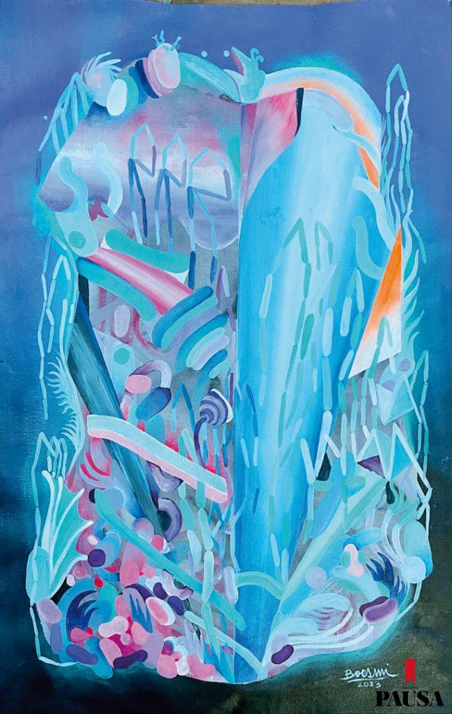 Graffitis imaginarios es un conjunto en desarrollo que dibuja desde siempre. Empezó a ponerle nombre en 2007, cuando vivía en Nueva York, y aclara que son series abiertas. Lo que quizás a primera vista parezcan garabatos sin planificación previa, muy pronto se vuelve símbolo y demanda la búsqueda inmediata de sus significantes y relaciones. A Undigital, en cambio, podemos enmarcarla en lo posdigital: utiliza recursos tecnológicos para nutrirlos de nuevos conceptos. El lienzo es tomado por una imagen que puede asemejarse a algo creado por inteligencia artificial, quizás, pero es muy distinto. Explora el glitch, los bites, los circuitos y esos otros errores digitales; hasta se atreve a explorar paisajes imaginarios.