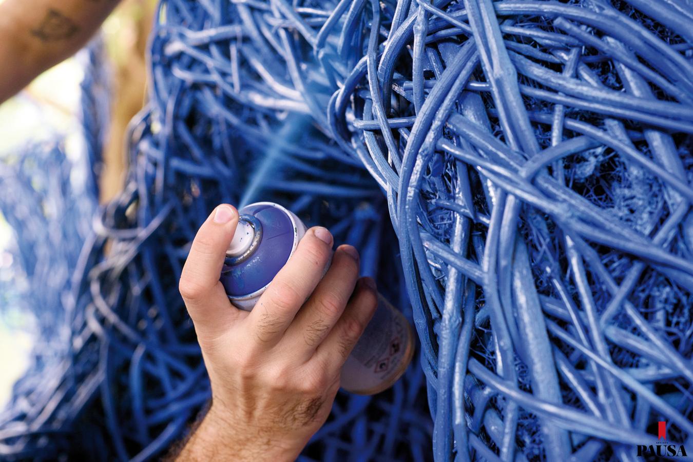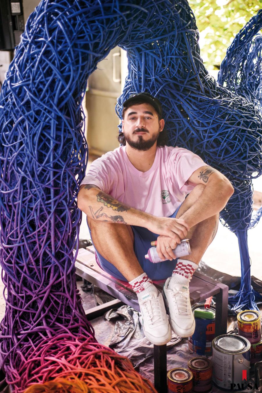 Para la exposición, Lucas experimenta con lienzos, pinturas y arte urbano, y también trabaja en colaboración con Diego Esquivel, un artista de Tobatí que hace esculturas con ysypo. “Estoy rayando puertas de autos como parte de mi obra, trabajo con ladrillo y con elementos que veo. No habrá nada que no exista en lo cotidiano. Creo que la gente se va a encontrar con un paisaje familiar, pero con otro abordaje. Reinterpreto la calle; para mí eso es un poco lo que se va a sentir, es la intención”, nos adelanta.