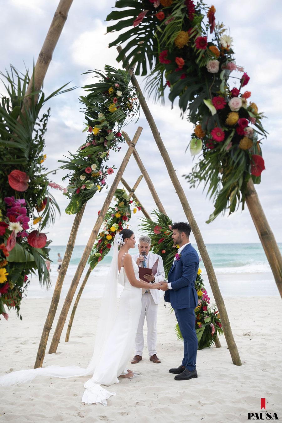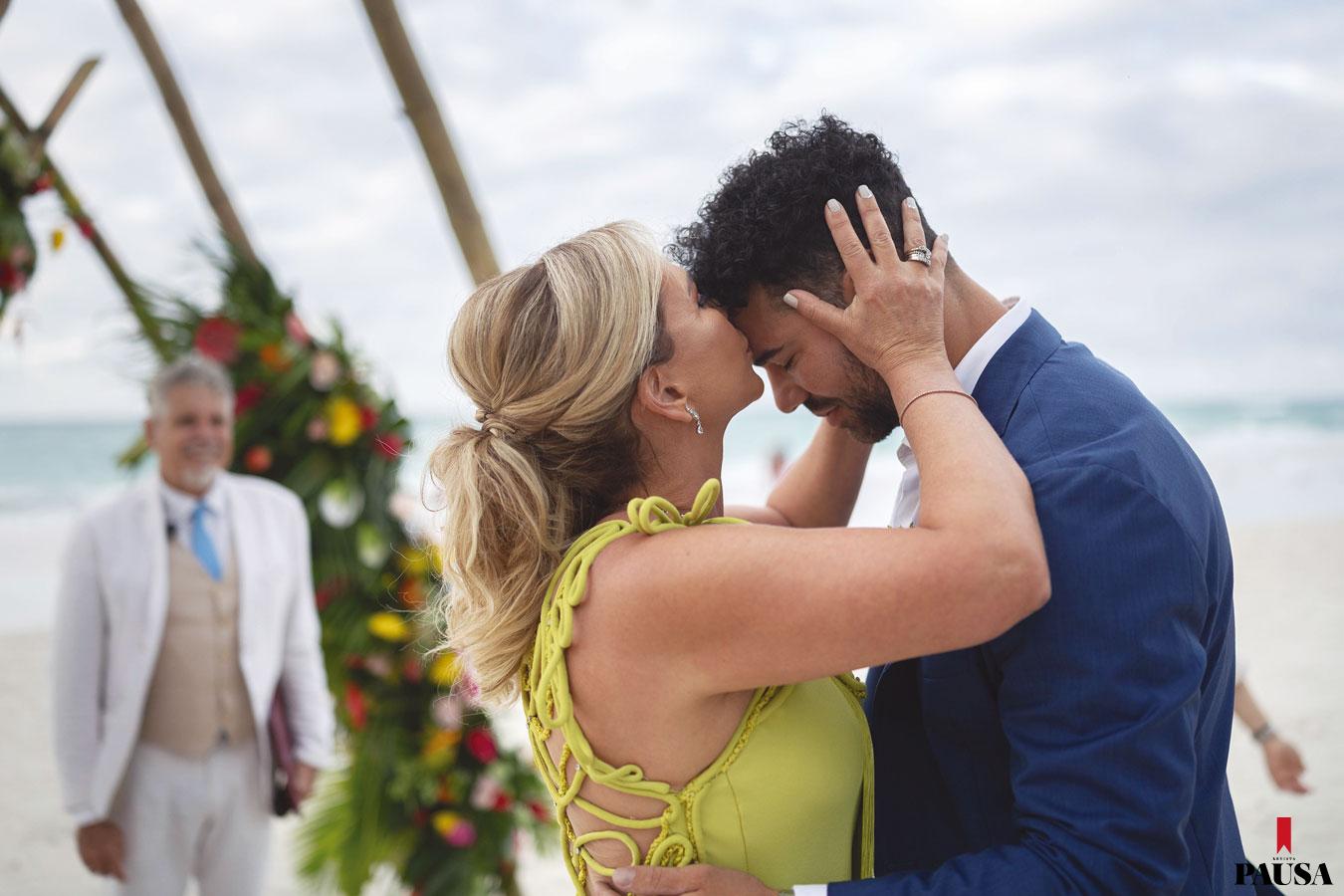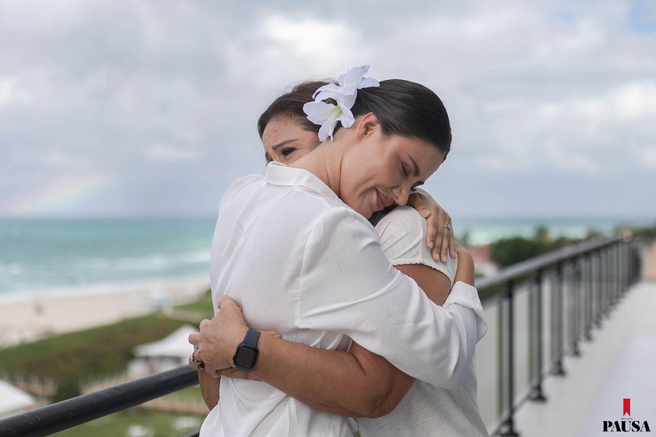 La novia llegó a la playa del brazo de su padre, César, y la escena sobrepasó a Renato: “Antes de la boda estaba muy nervioso, muy emocionado. Ya sabíamos que yo iba ser el que se emocionara más, y así fue. Me costó contener las lágrimas. Ver a la mujer de mi vida tan hermosa fue algo que me guardo en el corazón”. Silvia, su madre, lo acompañó al altar.