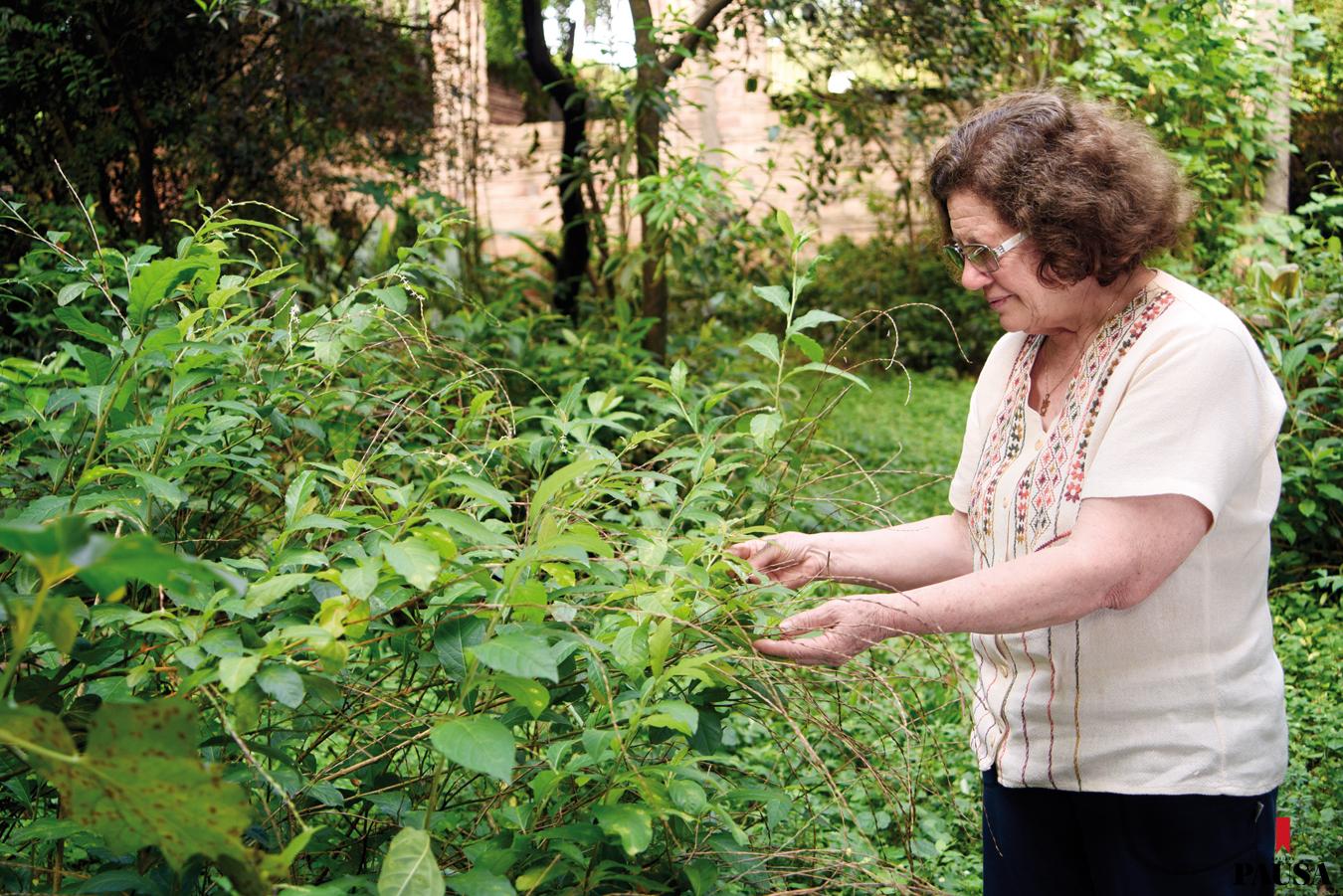 Celsa Ramírez Rodas pasea por su patio y señala unas plantas en específico. “Hay un proverbio oriental que dice que lo que crece a tu alrededor, eso es lo que necesitás”, cuenta. Apunta a la uña de gato (Uncaria tomentosa), de propiedades antiinflamatorias. En seguida habla de otra especie, que es especial para golpes y hematomas. Cada una tiene un procedimiento para extraer sus atributos.