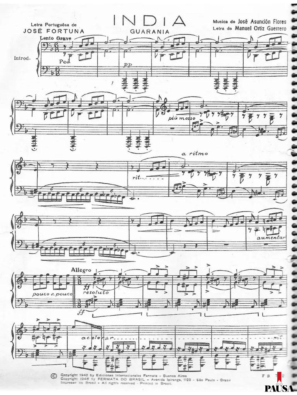 “Jejuí la iba haciendo poco a poco, ya que se trataba de una composición experimental”, cuenta Flores en sus Memorias. El tema, trío para violín, violonchelo y piano, fue creado especialmente para sus amigos Alfredo Kamprad, Erik Piezunka y Alfred Brand. Le importaba específi camente que fueran extranjeros, para demostrar que esta traducción de la música nativa al lenguaje musical fuera posible y aplicable en cualquier contexto y con todos los instrumentos de una orquesta.