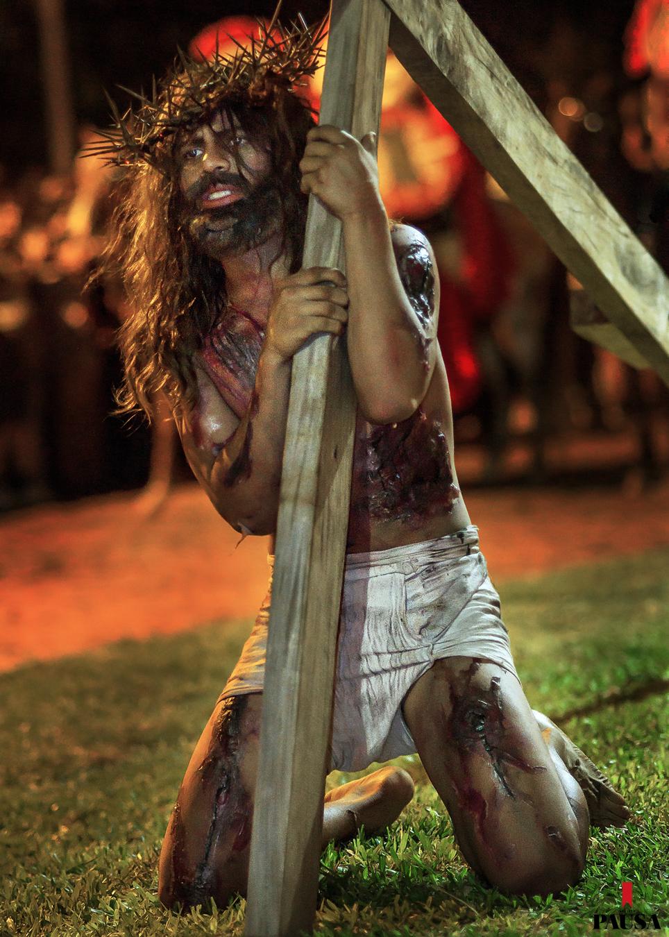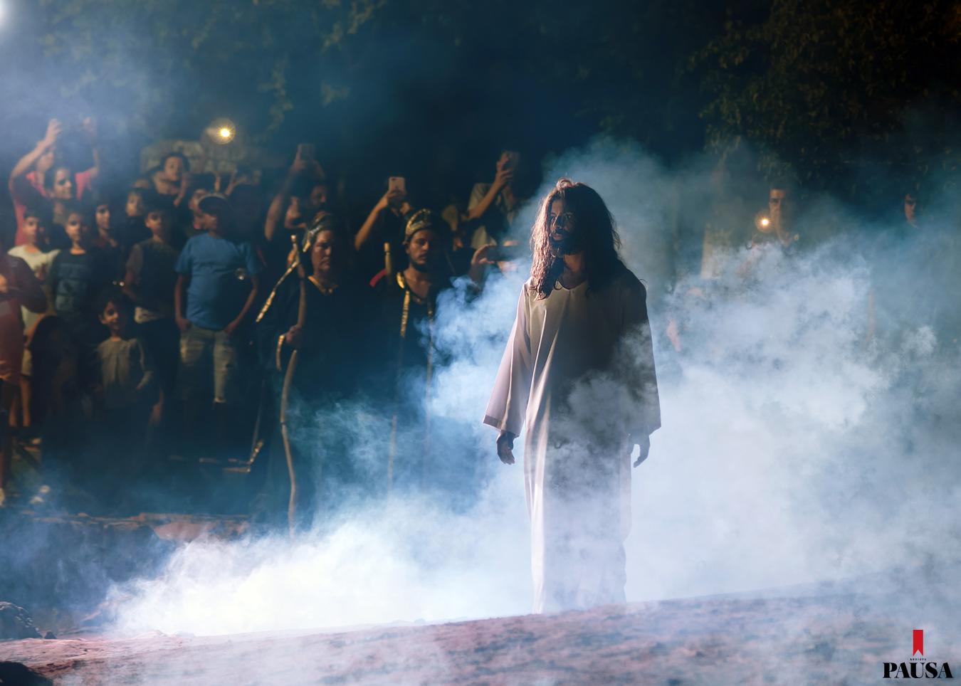 No es la primera vez que teatralizan el vía crucis en Yaguarón. Luis Recalde, productor del elenco, recuerda los antecedentes: Un hombre llamado Jesús, adaptada por Julián Bordón, y El camino de la cruz, que se hacía en el patio del templo. Pero al nacer Teatro Yara en 2018, algo cambió y pusieron manos a la obra (literalmente). Héctor Lozzca, entonces director, introdujo elementos que definieron una identidad: la tropa montada, el protagonismo del fuego, énfasis en el vestuario y maquillaje. Y, sobre todo, el guaraní.