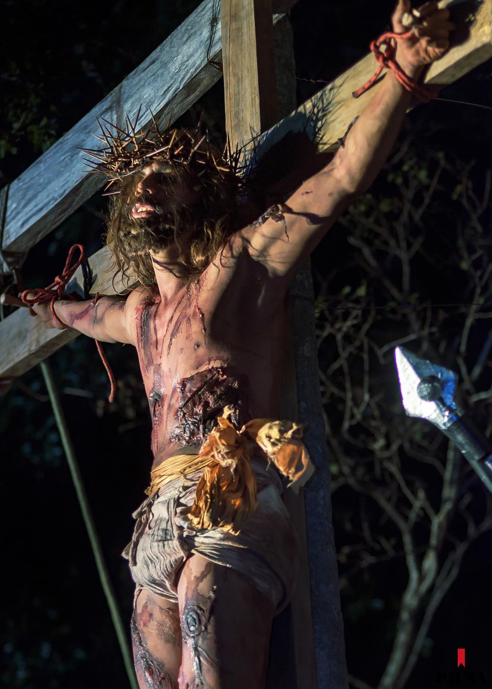 Ahí, en ese punto donde el esfuerzo físico se encuentra con la conmoción espiritual, la obra alcanza su cúspide. Al pie del cerro Yaguarón, bajo un cielo que ha visto pasar siglos, la crucifixión se despliega como un altar natural. “Producir el clímax de Kurusu rape es un ejercicio de humildad y respeto, cada año trabajamos con el desafío de montar la parte técnica (luces, sonido, interpretaciones) en un escenario natural, lo cual brinda a nuestros actores y al equipo de producción una experiencia que difícilmente se puede equiparar a la de otras puestas en escena”, afirma Luis Recalde.