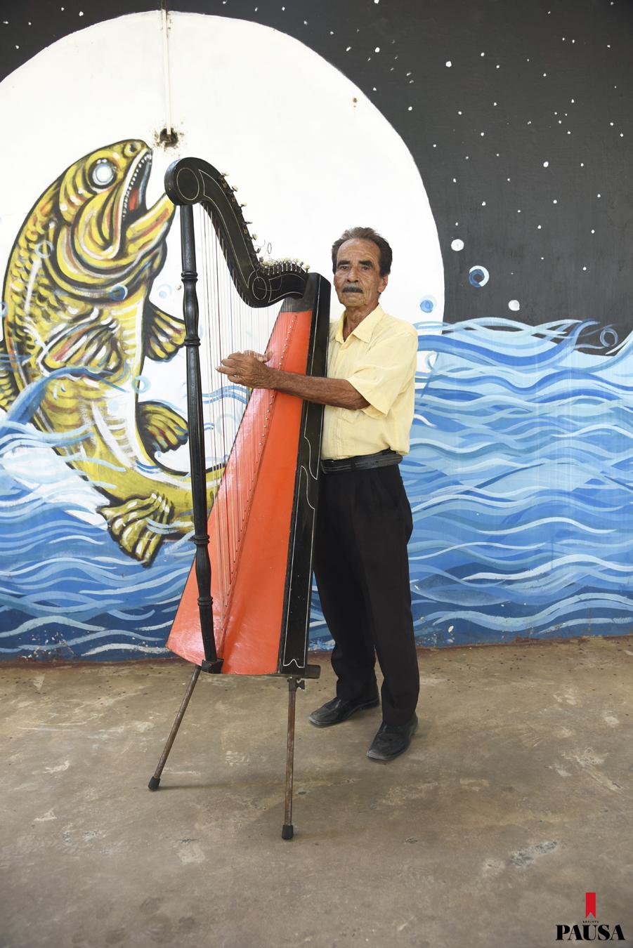 Don Gabriel Domínguez se dedica a la música desde los 15 años y ahora tiene 70. Cada viernes viene desde Ybytymí, Paraguarí, a las 11.00, para trabajar con su instrumento: el arpa. Su repertorio está compuesto de las mejores piezas de música paraguaya: guaranias y polcas, pero sus favoritas son las de Félix Pérez Cardozo. “¿Que voy a hacer a mi edad? Voy a continuar todo lo que pueda, es lo que a mí me gusta”, nos comenta.