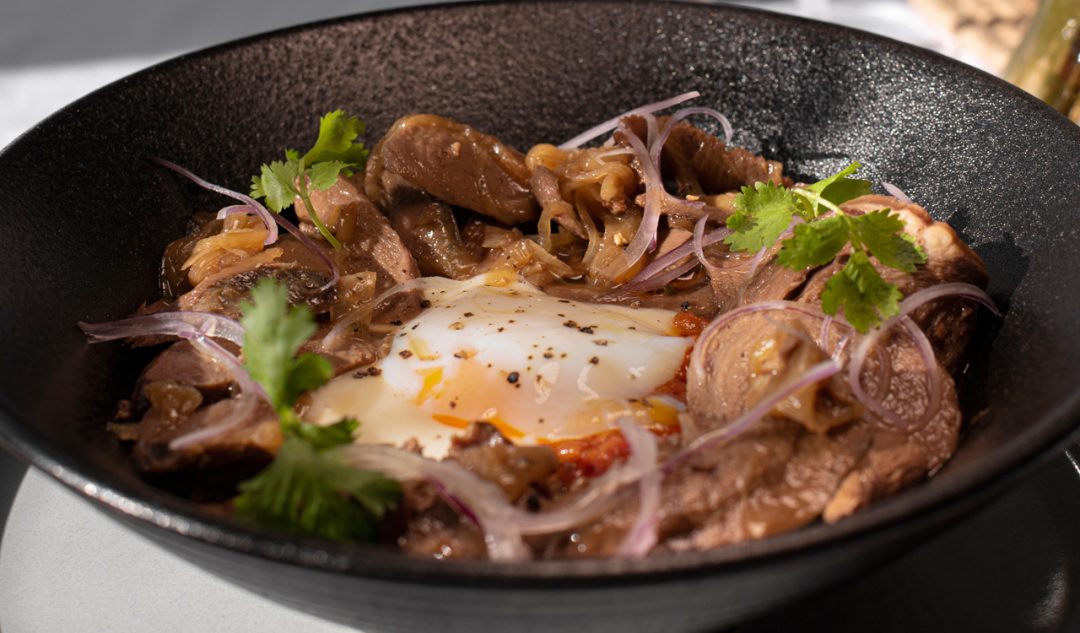 Claro que hay bife koygua, pero es de un corazón vacuno cocinado por 36 horas a bajas temperaturas. El secreto de Luis es mantener la cocción a 65 °C para concentrar el sabor y evitar el gusto fuerte que suele asociarse con el corte. El resultado es tierno y sabroso, especialmente cuando se lo acompaña con un cremoso aligot de mandioca.