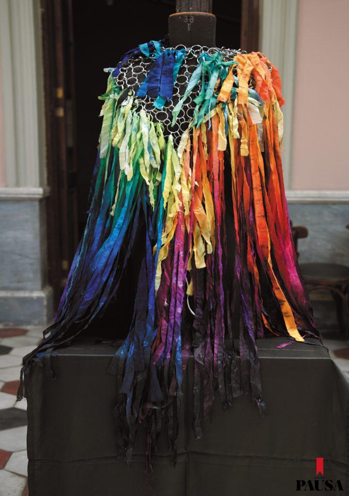 Nos recibe en el luminoso hall de la Casa del Teatro Edda de los Ríos, institución de la que además es director hace cuatro años. La figura de maniquíes forrados en tela negra nos impacta con las magníficas piezas policromáticas hechas de seda natural, el material estrella de la obra de Rolando. Él es especialista en el art to wear o wearable art, que propone piezas de arte hechas a mano que pueden vestirse o exhibirse. Estas propuestas cuentan las cuatro décadas de tra­yectoria a través de prendas únicas, hechas artesa­nalmente para obras de teatro, óperas, performances o simplemente para ser usadas en todo su esplendor. Sus patrones geométricos nos hablan de la atempo­ralidad de los diseños, que pueden ser utilizados sin distinción de edad, género o tamaño.