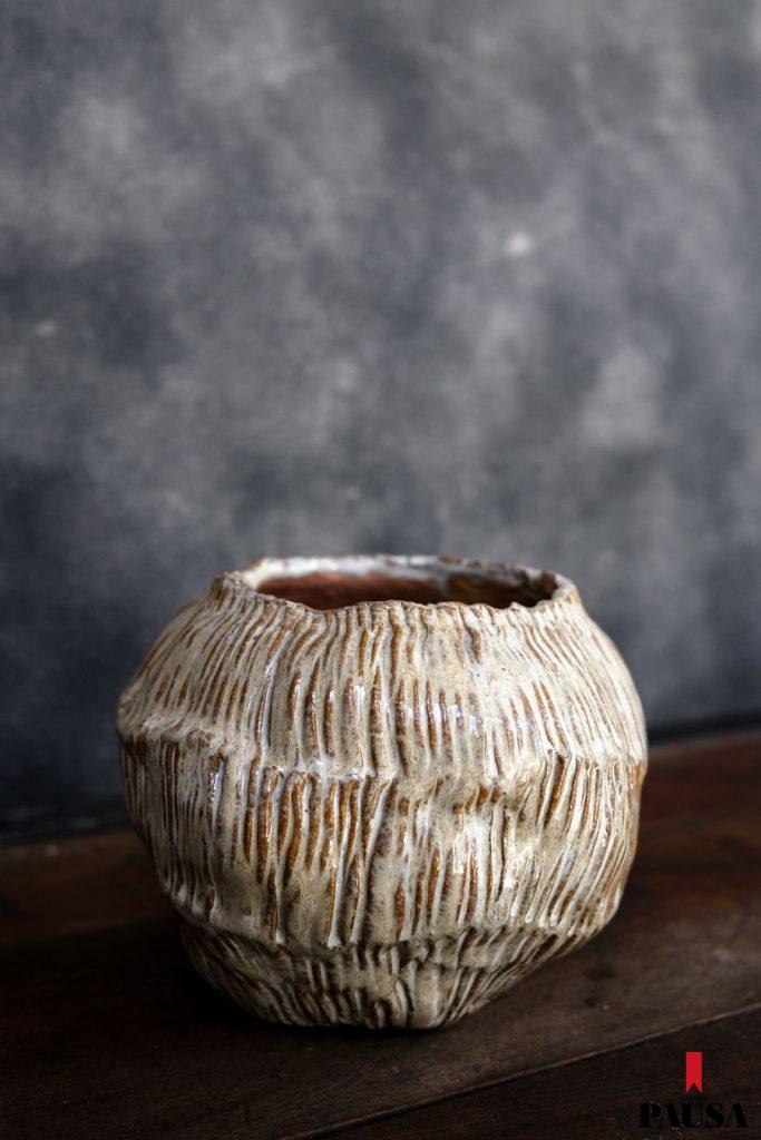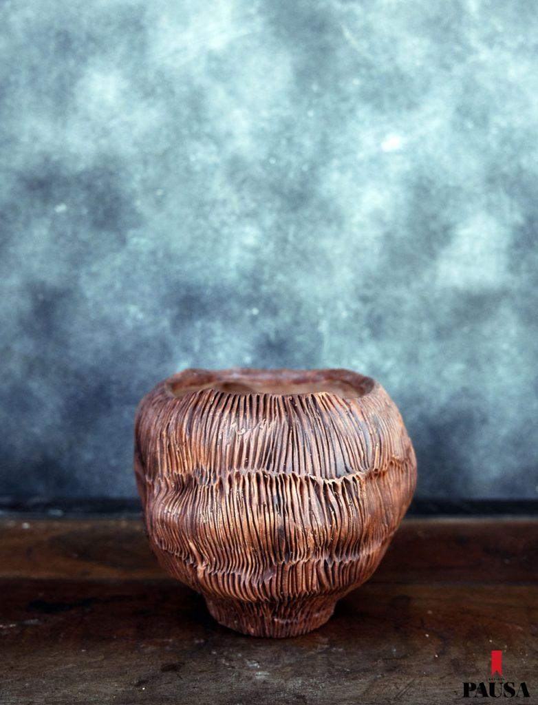 La textura rocosa y de paleteado fueron claves para evocar piezas provenientes de la naturaleza. Las formas orgánicas de estas vasija-objetos representan la fluidez y la tan particular característica plástica de la arcilla. Cada uno de los detalles fue seleccionado para representar las particularidades territoriales.