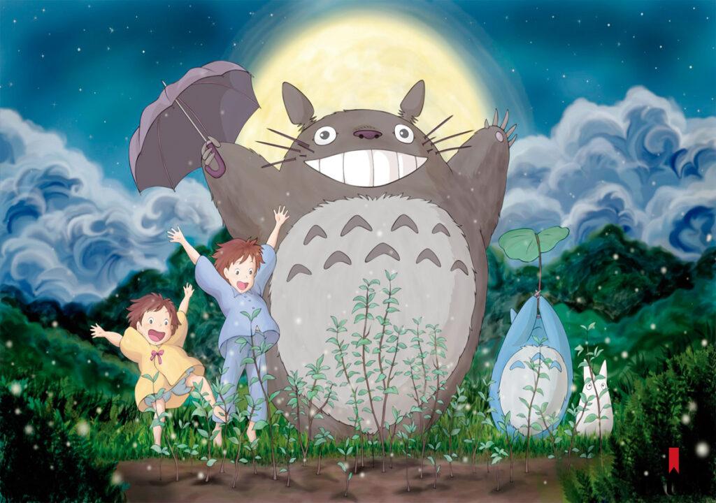 Una de las escenas más fantásticas de Mi vecino Totoro (1988) se da cuando, con la luna llena como testigo, las niñas, Totoro y sus amiguitos realizan una especie de baile ritual para que las plantas empiecen a crecer. De aquel llamado nace un árbol gigantesco.