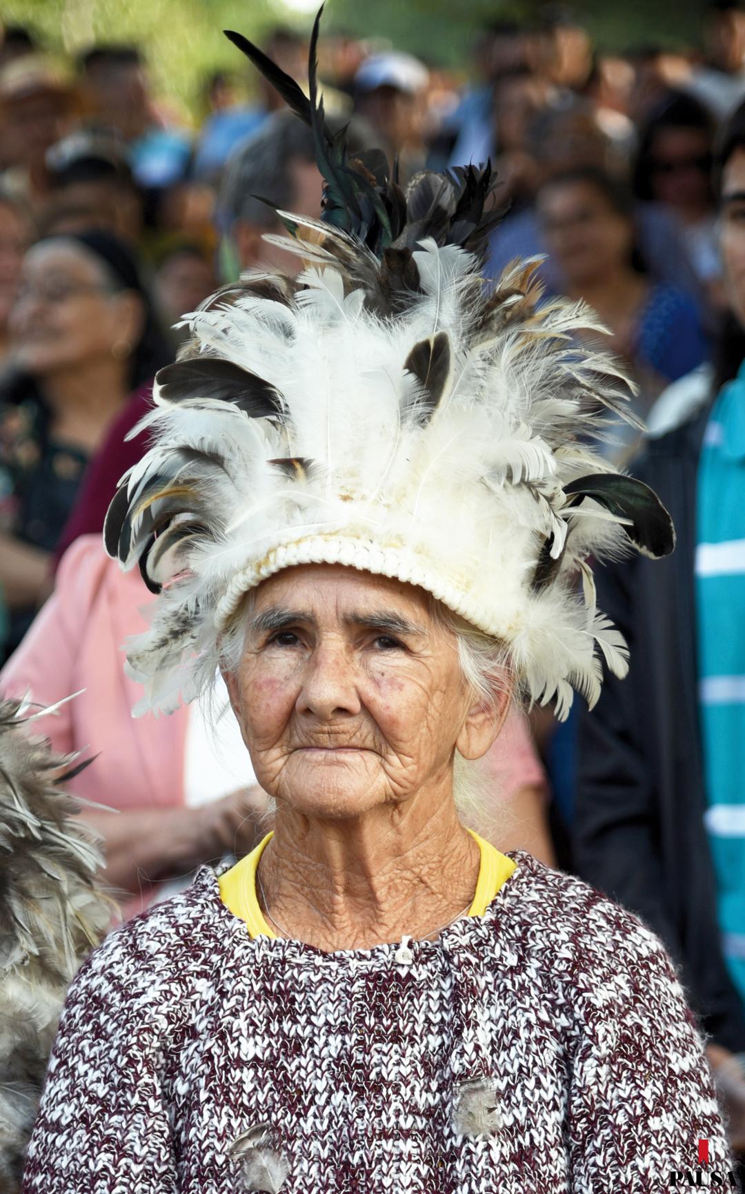 Este 2023, por fin se pudo realizar el festejo después de tres años de ausencia, producto de la pandemia. En esta ocasión, entre los emplumados hubo personas de todas las edades, como Martina Ruiz, de 85, que demostró su fe con cada gesto de sus manos y su rostro marcado por los años, durante la misa. Esta vez, eligió un simple gorro de plumas.
