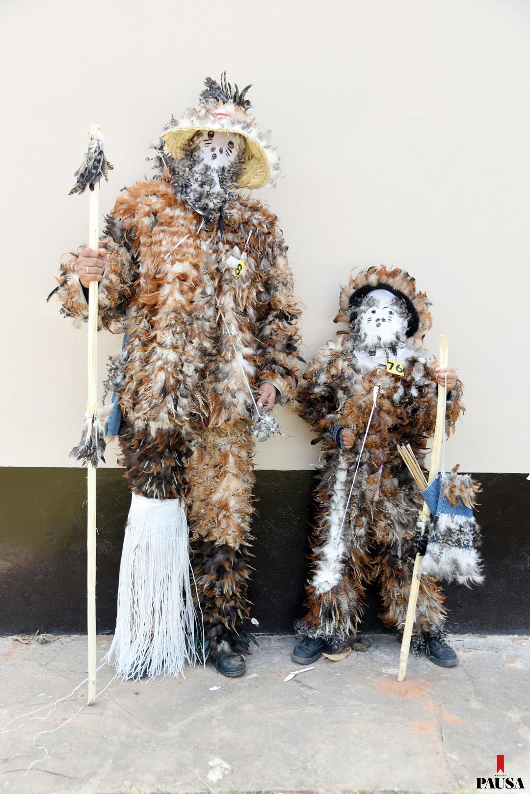 La mayoría, en general jóvenes, se visten completamente con este plumaje y también cubren sus rostros con máscaras de origen diverso, como simples trapos de colores, decorados o piezas de látex actuales. Mientras dura el festejo, también modifican su tono: hablan con voz muy aguda para no ser reconocidos durante el evento.
