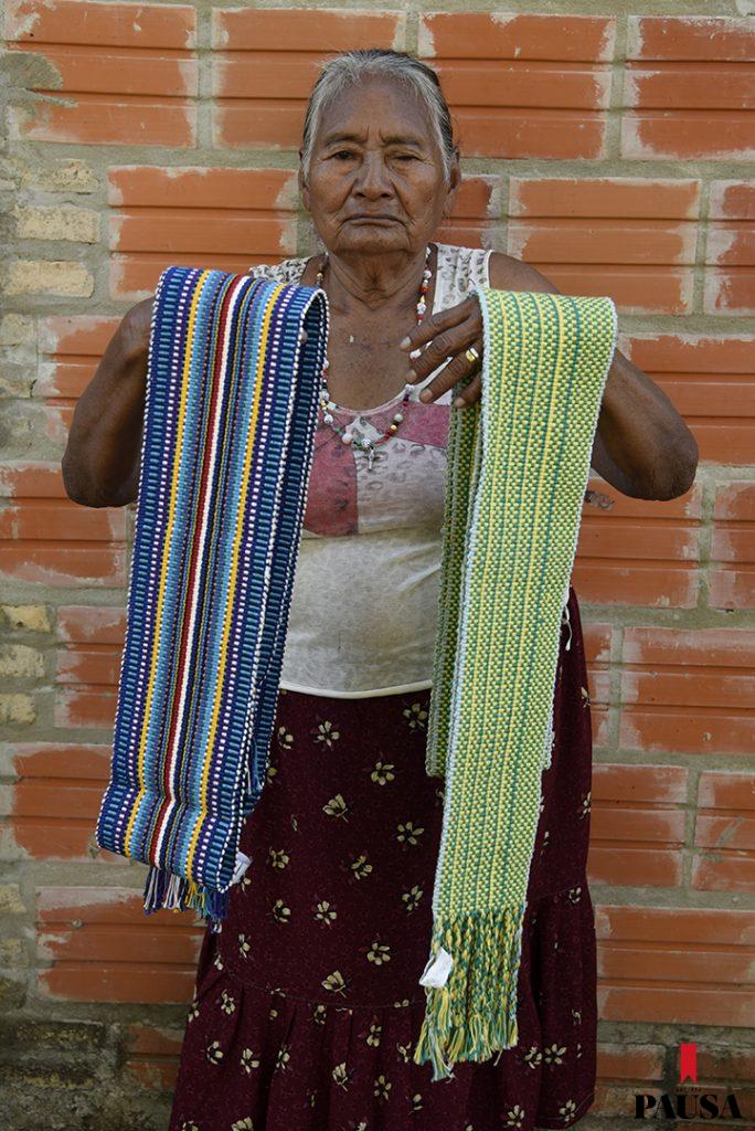“si bien algunas mujeres hacen trabajos domésticos y otras labores fuera de la comunidad, lo que producen con sus manos es prácticamente la única fuente de ingresos para la mayoría de las familias” explica el cacique Alfonso Benítez.