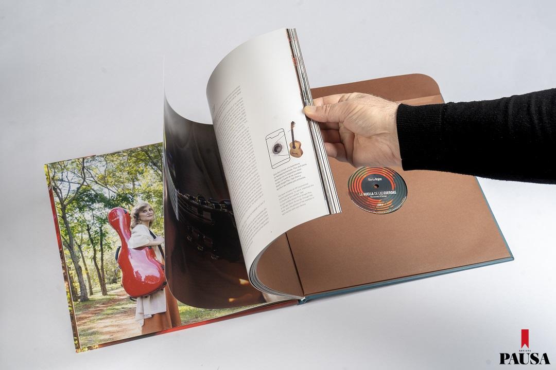 Cuando hablamos con Celeste Prieto, la gran maestra del diseño paraguayo, le contamos de nuestras ganas de rendirle tributo a estos hermanos y hermanas de la guitarra. Ella nos dijo que el tamaño del vinilo nos permitía explayarnos. Nos sumergimos en la tarea de ir documentando cada paso del proceso tanto en video como en fotos, y así fue armándose esta parte del relato. Fueron Celeste y Santiago Giordano, crítico musical del diario Página 12, quienes construyeron este libro.