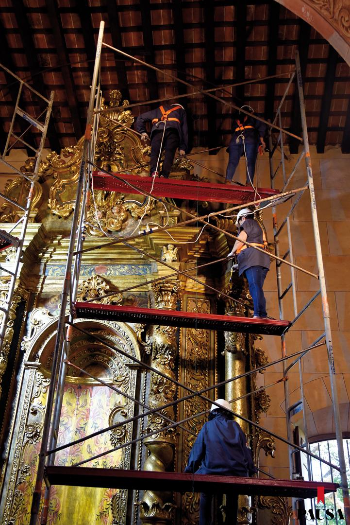 Cuando eso se utilizaron técnicas hoy ya en desuso, como la inmersión en cera de cada una de las piezas que conforman el conjunto. Ese material se suponía protegía su superficie, pero además funcionaba como un excelente receptor y acumulador de partículas de polvo. En esos trabajos de los 70 estuvieron dos de las restauradoras que hoy también participan de las tareas de rescate: las notables Verónica Verón y Petrona Villagra, un aporte de experiencia importantísimo a los trabajos actuales. Paralelamente, el retablo izquierdo lamentablemente debió ser desmontado, pues ya corría riesgo de colapsar. El ataque de las termitas no perdonó ni un milímetro de esta verdadera joya.