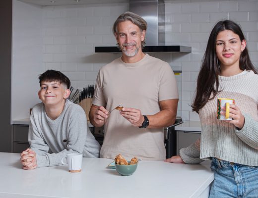 Desde la intimidad familiar Él lleva el delantal bien puesto: es chef, comunicador y un padre que mezcla los fogones con los juegos en casa. Su mayor desafío no es un plato complicado, sino criar a Toto y Juli…