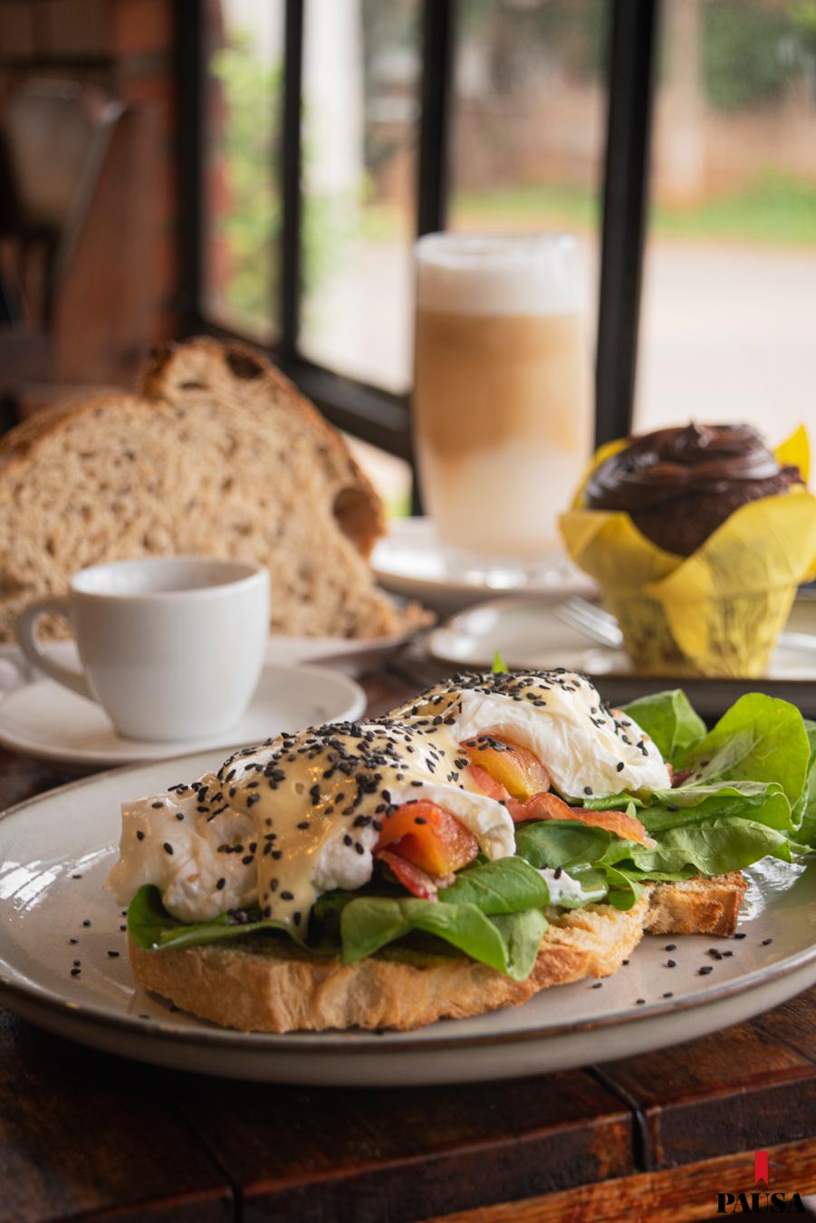 La carta se adapta a la temporada: incorpora la frutilla tradicional de Areguá en varias preparaciones. Además, ofrece variedad de sándwiches, croissants y una selección de postres, entre los que destacan las tortas de chocolate y las masas dulces.