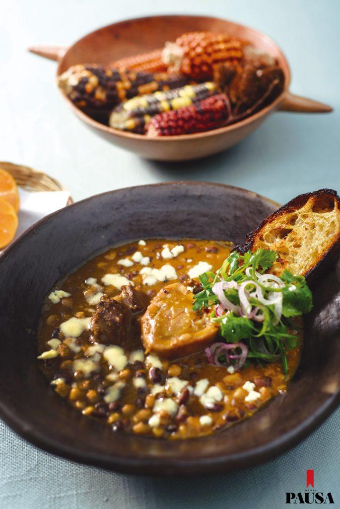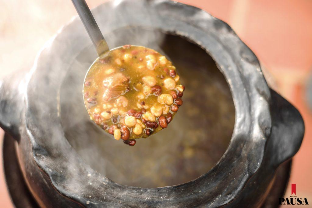 Cuando nos planteamos esta nota, no se nos ocurrió una mejor opción que colaborar con Romi y Beto, cuya cocina se caracteriza por traer a la contemporaneidad aquellos sabores tradicionales de la gastronomía autóctona. Para esta oportunidad, el dúo decidió sacar el brasero al patio y preparar el jopara en una olla de barro. “Todo lo que se cocine en olla de barro adquiere un gusto característico y más con el brasero, que aporta el toque ahumado. Aparte, nos gusta mucho utilizar la cerámica en nuestro día a día, como elemento conectivo con nuestra artesanía”, explica Romina. Para ella, el ahumado de la leña y el carbón aporta mucho al sabor suculento de caldos como este.