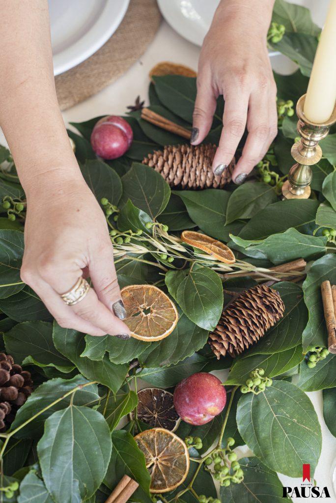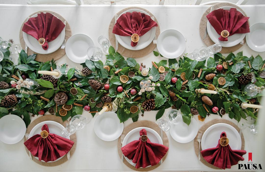 Pilar no intenta imitar una Navidad con pinos, que no es de acá: “Prefiero un árbol con flores de karanday y naranjitas deshidratadas. Muy americanizada está nuestra Navidad y es relinda, pero me interesa usar lo que tenemos acá. En vez del pino, veo cómo funcionan las hojas de ingá, busco materiales que duran y evito el oasis porque tiene microplásticos. Intento hacer todo compostable o reutilizable. ¡Y de fácil acceso!”.