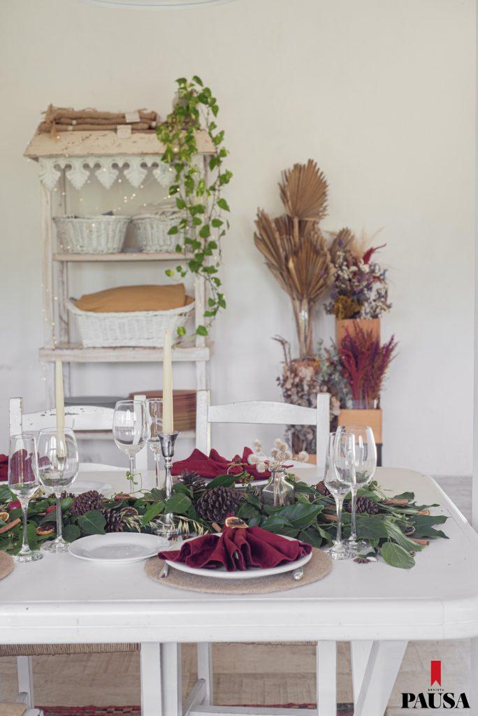 Es allí donde nos recibió en su mes favorito para mostrarnos una fabulosa mesa que se siente cercana, probablemente gracias al uso de hojas de ingá como follaje. Es especial para ella porque esa misma mesa sobre la que trabajó ese día es la que su abuela usaba para hacer pastas, allá en otro tiempo, rodeada por muebles que rescató de la oficina de su abuelo. “Todo acá grita familia, tiene un significado. Suena muy cursi, pero con amor todo va a salir lindo. Creo que esa es la receta, la fórmula secreta”, dice riendo, mientras evoca alguna escena particular de navidades pasadas.
