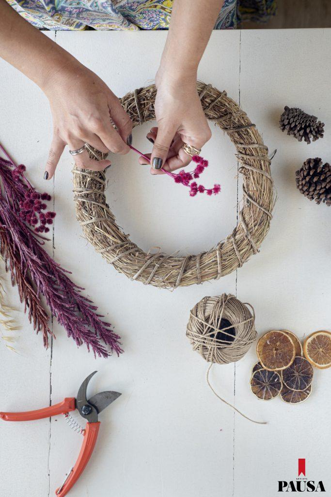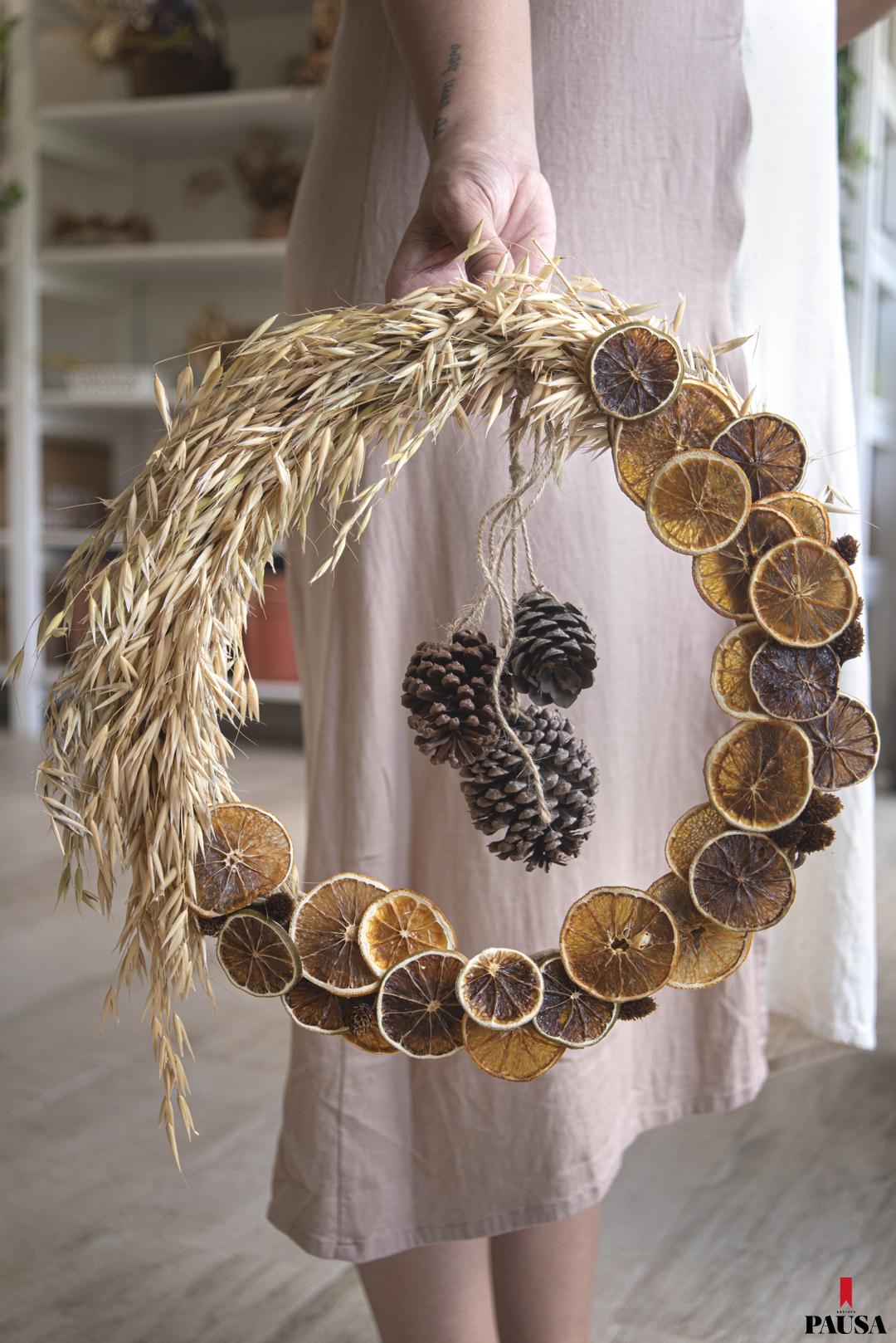 Así como cosechó flores para invitar a la gente a conocer La Pilarica cuando abrió recién sus puertas, Pilar cosechó momentos de su propia vida para inspirarse y crear los ornamentos para Pausa. Así, nos invita también a crear recuerdos y nos anima a manufacturar nuestras propias coronas navideñas en compañía o, al menos, a elegirlas pensando en las personas que queremos agasajar.