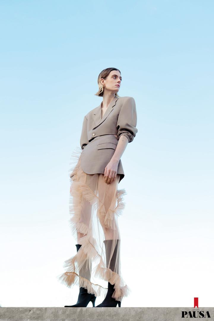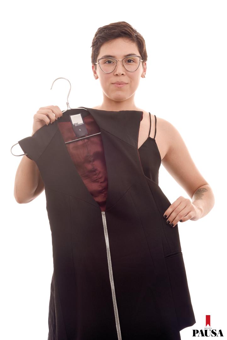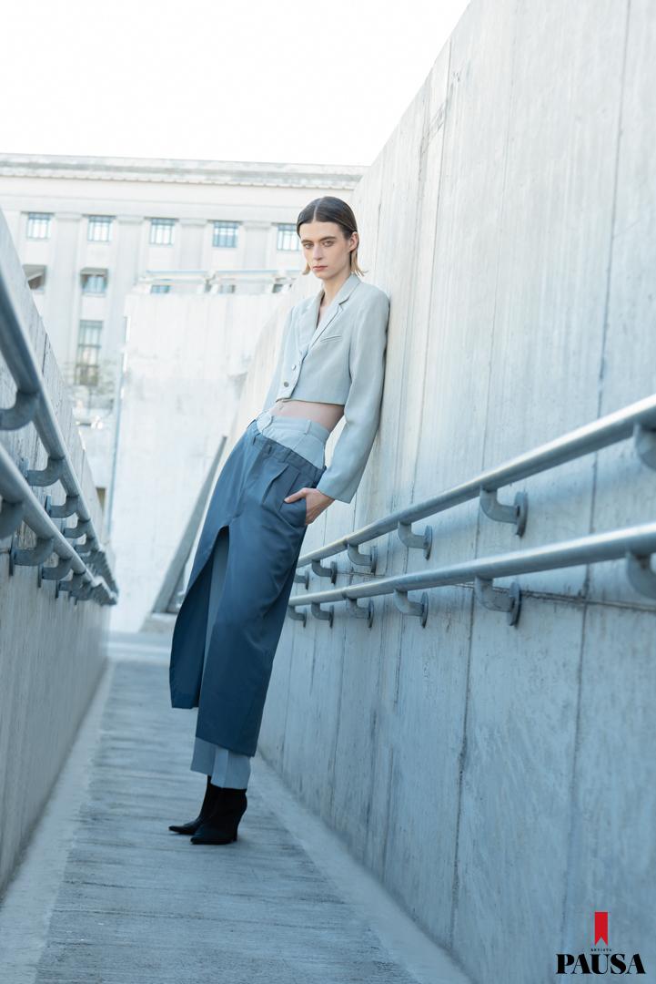 “Human X nace como una versión adulta del cuento de Gould, voy tomando elementos del vestir que inconscientemente asociamos como masculinos o femeninos. La idea también es que, a partir de la fusión de elementos tipológicos, las prendas no puedan catalogarse dentro del espectro binario”, puntualiza.
